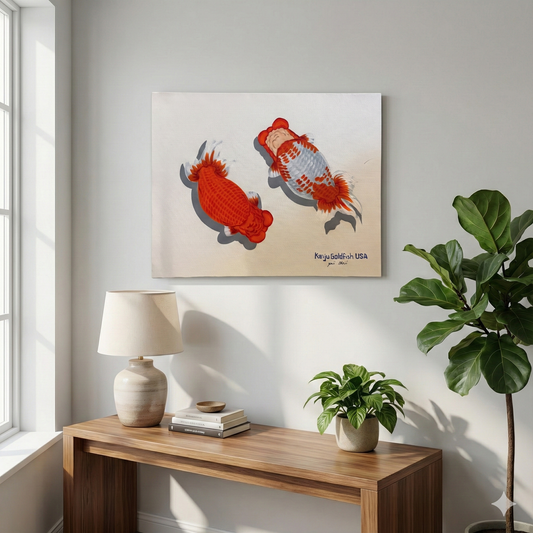 Hand Painted Red and White Tiger Ranchu Goldfish Art Canvas